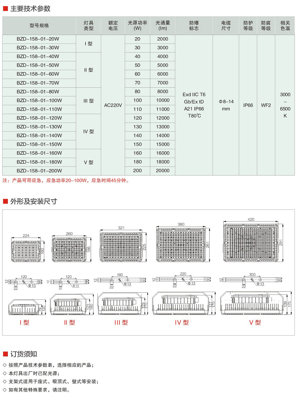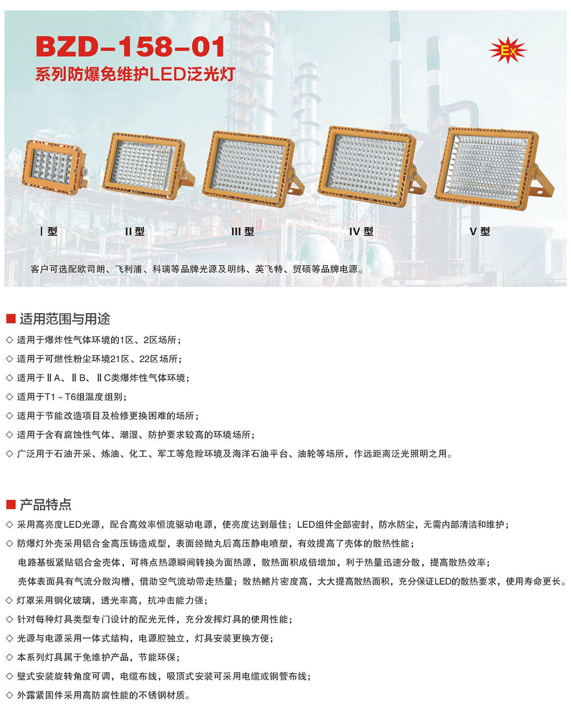 产品中心 LED防爆灯 BZD-158-01系列防爆免维护LED泛光灯(ⅡC)
