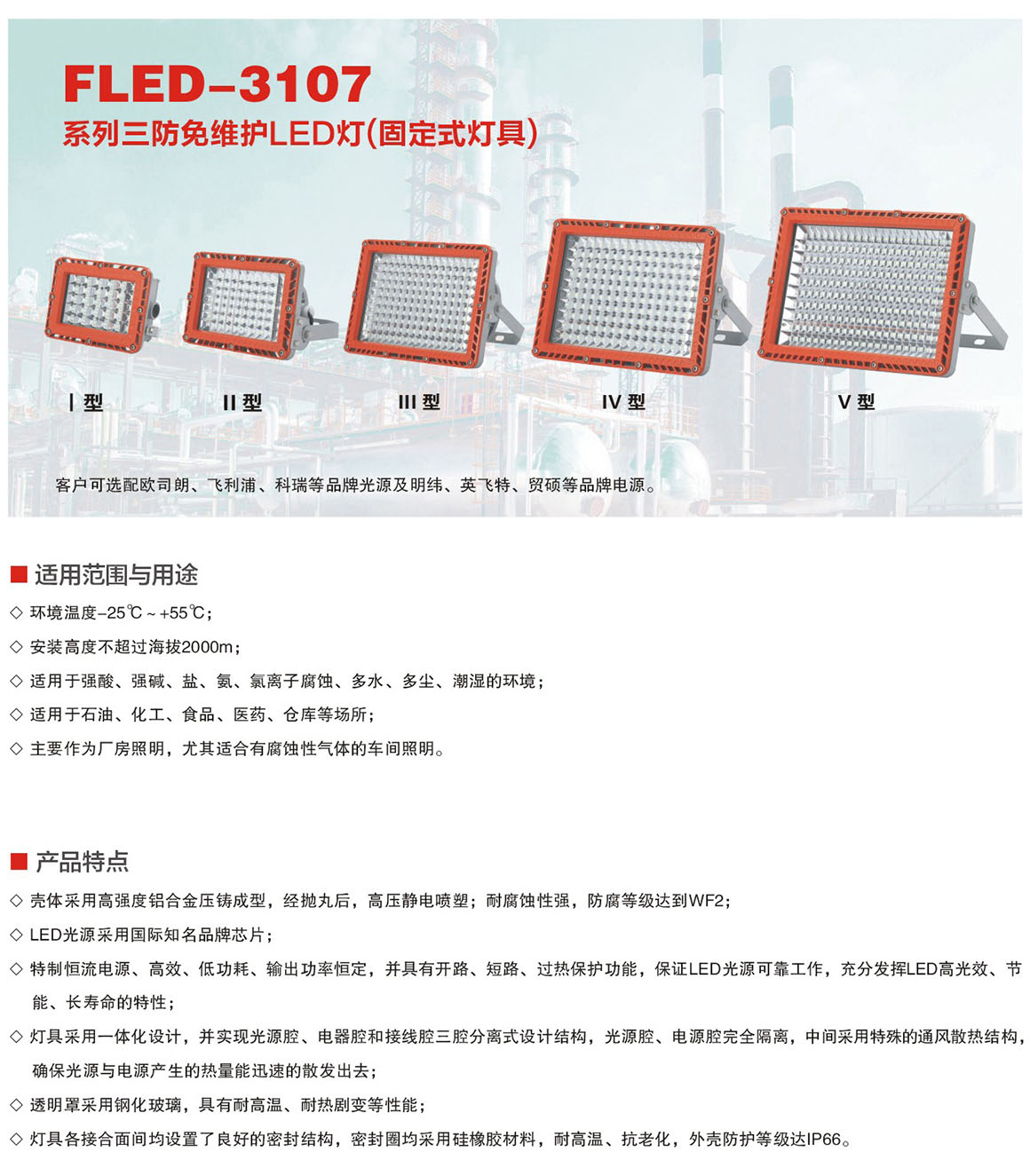 产品中心 LED防爆灯 FLED-3107系列三防免维护LED灯(固定式灯具)