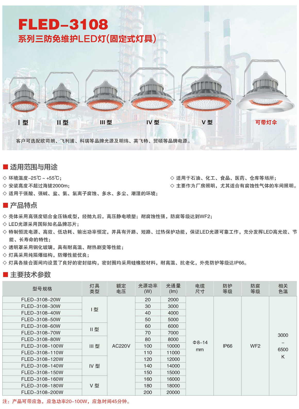 产品中心 LED防爆灯 FLED-3108系列三防免维护LED灯(固定式灯具)