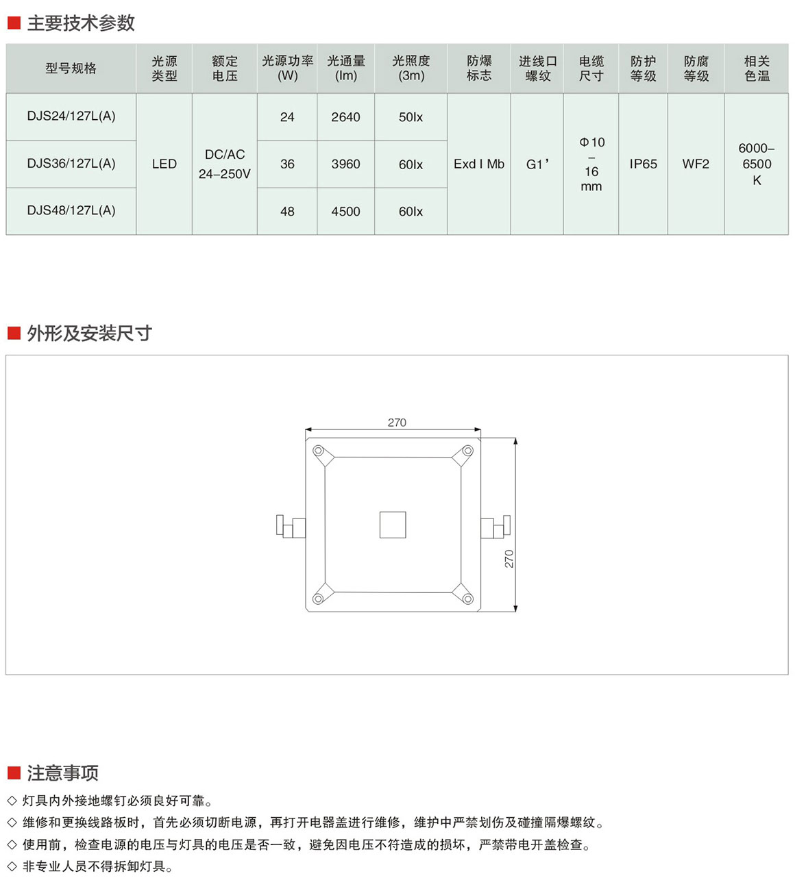 产品中心 矿用LED巷道灯 DJS24/36/48/127L(A)系列矿用隔爆型兼本质安全型LED支架灯