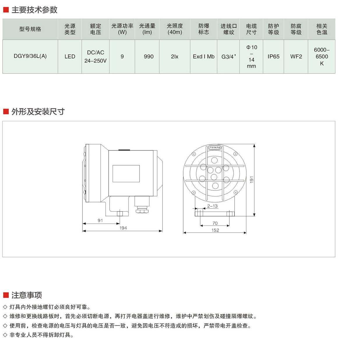 产品中心 矿用LED巷道灯 DGY9/36L(A)系列矿用隔爆型LED机车灯