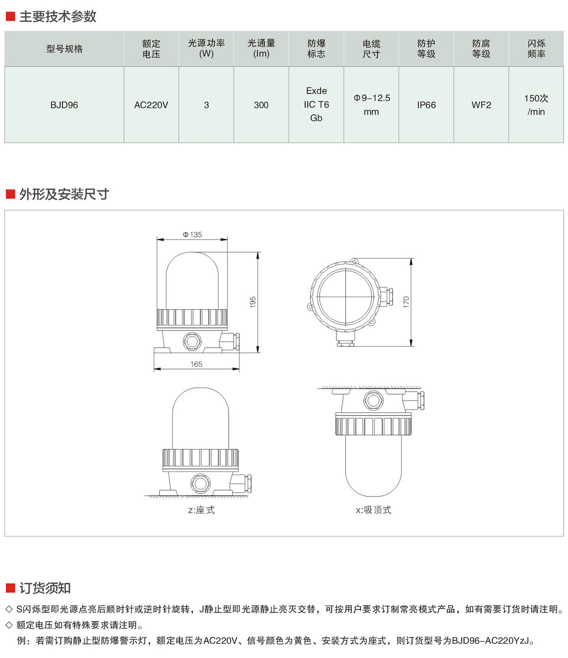 产品中心 厂用防爆灯具 BJD96系列防爆警示灯(ⅡC)