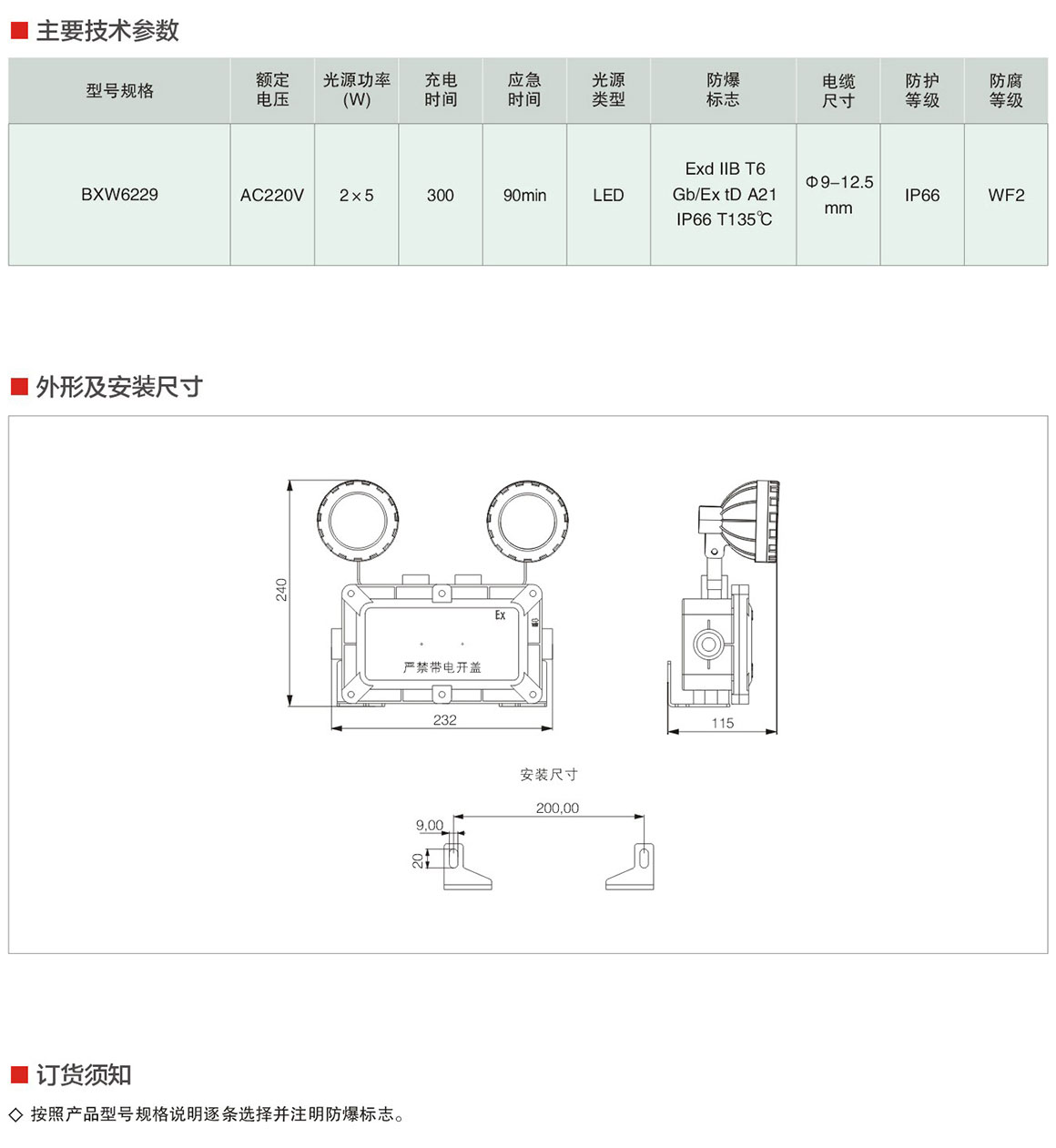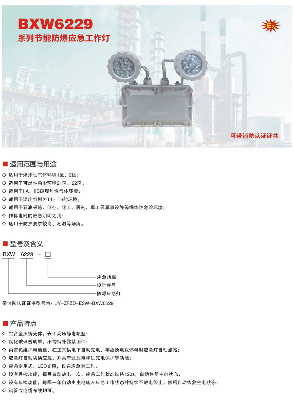 产品中心 厂用防爆灯具 BXW6229系列节能防爆应急工作灯(ⅡB)