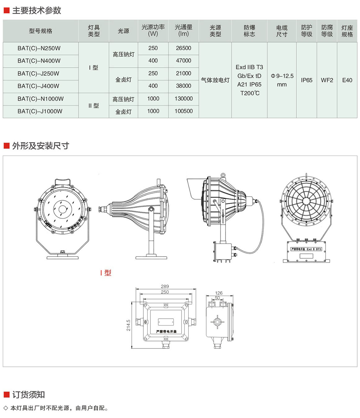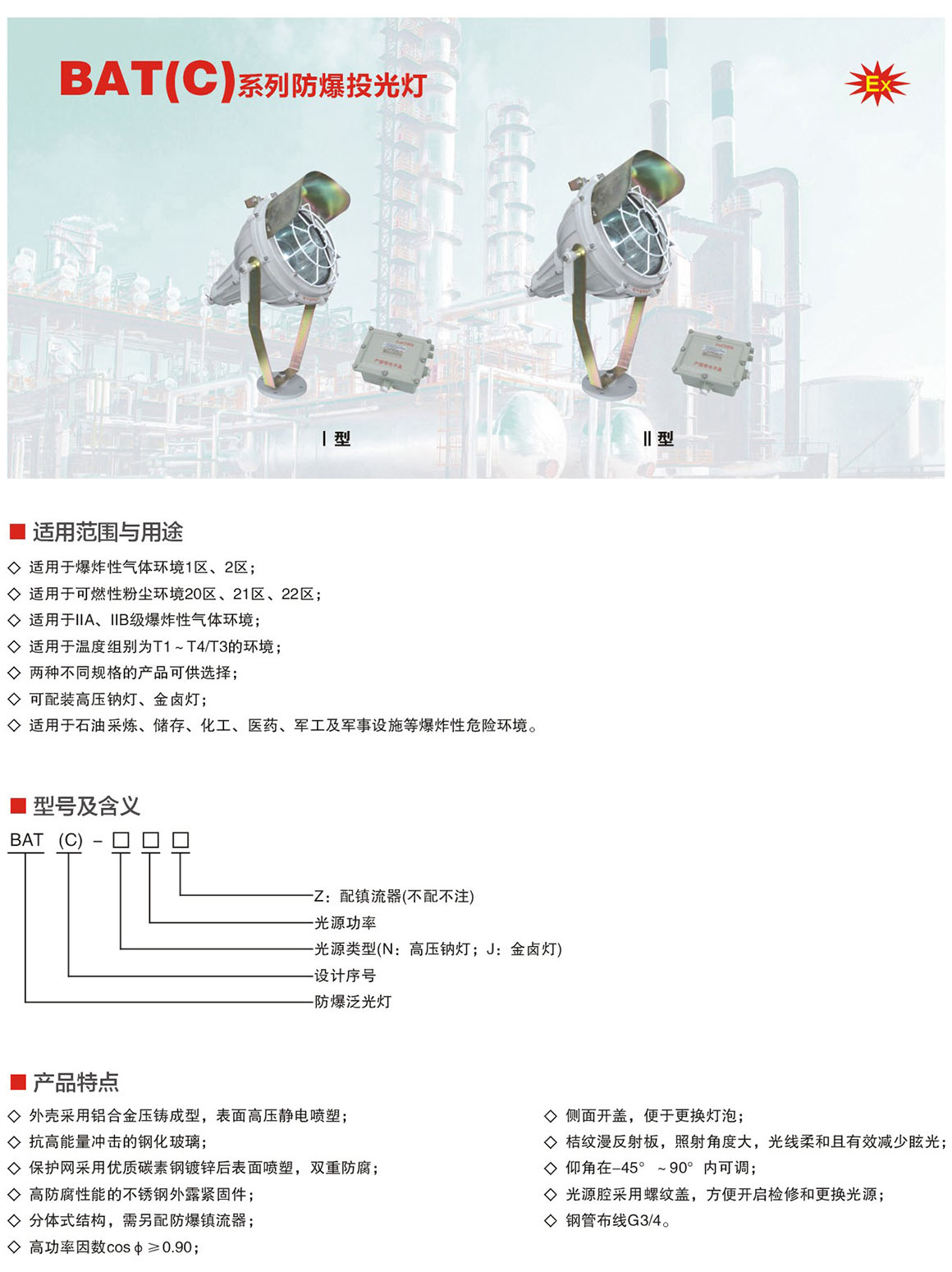 产品中心 厂用防爆灯具 BAT(C)系列防爆投光灯(ⅡB)