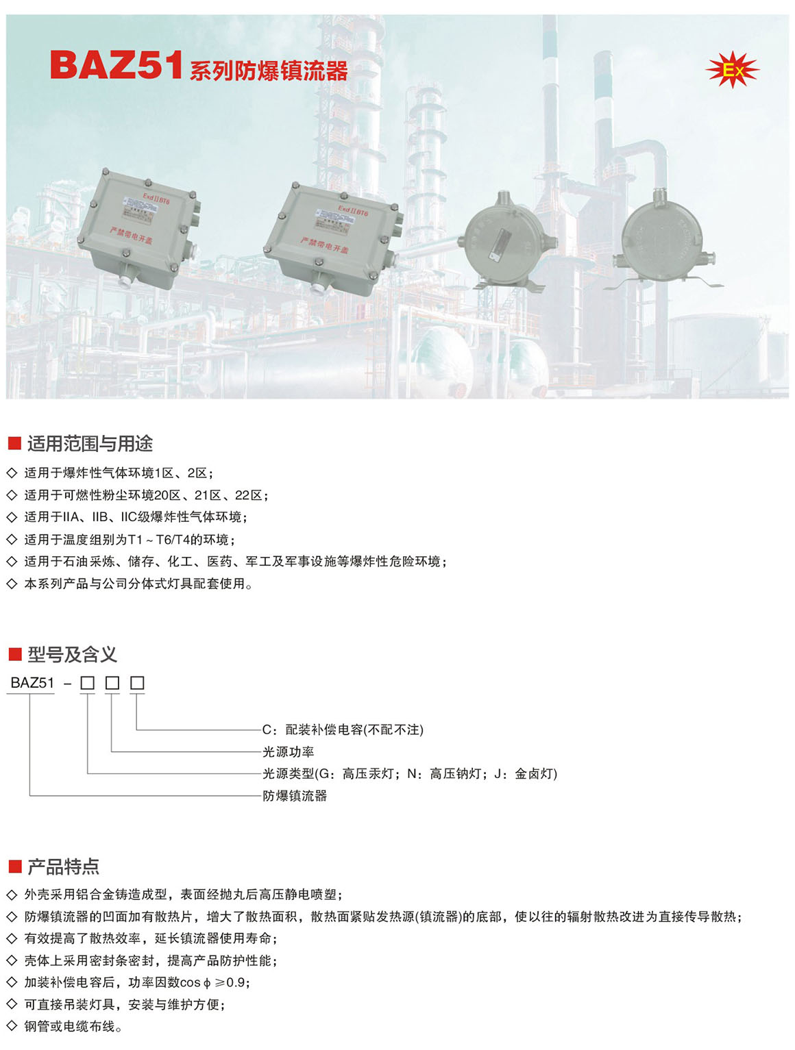 产品中心 厂用防爆灯具 BAZ51系列防爆镇流器(ⅡC)