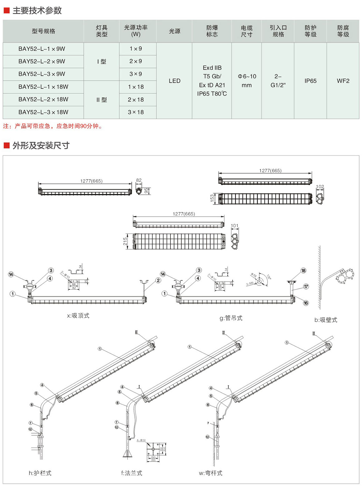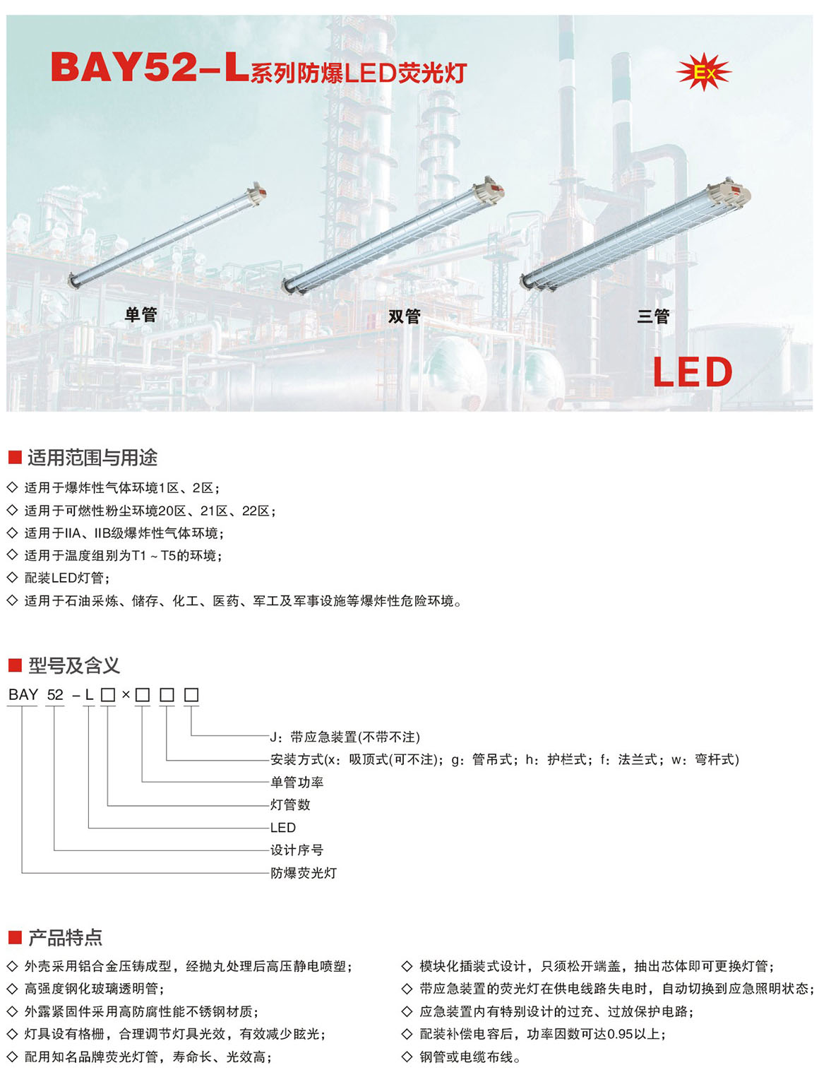 产品中心 厂用防爆灯具 BAY52-L系列防爆LED荧光灯(ⅡB)
