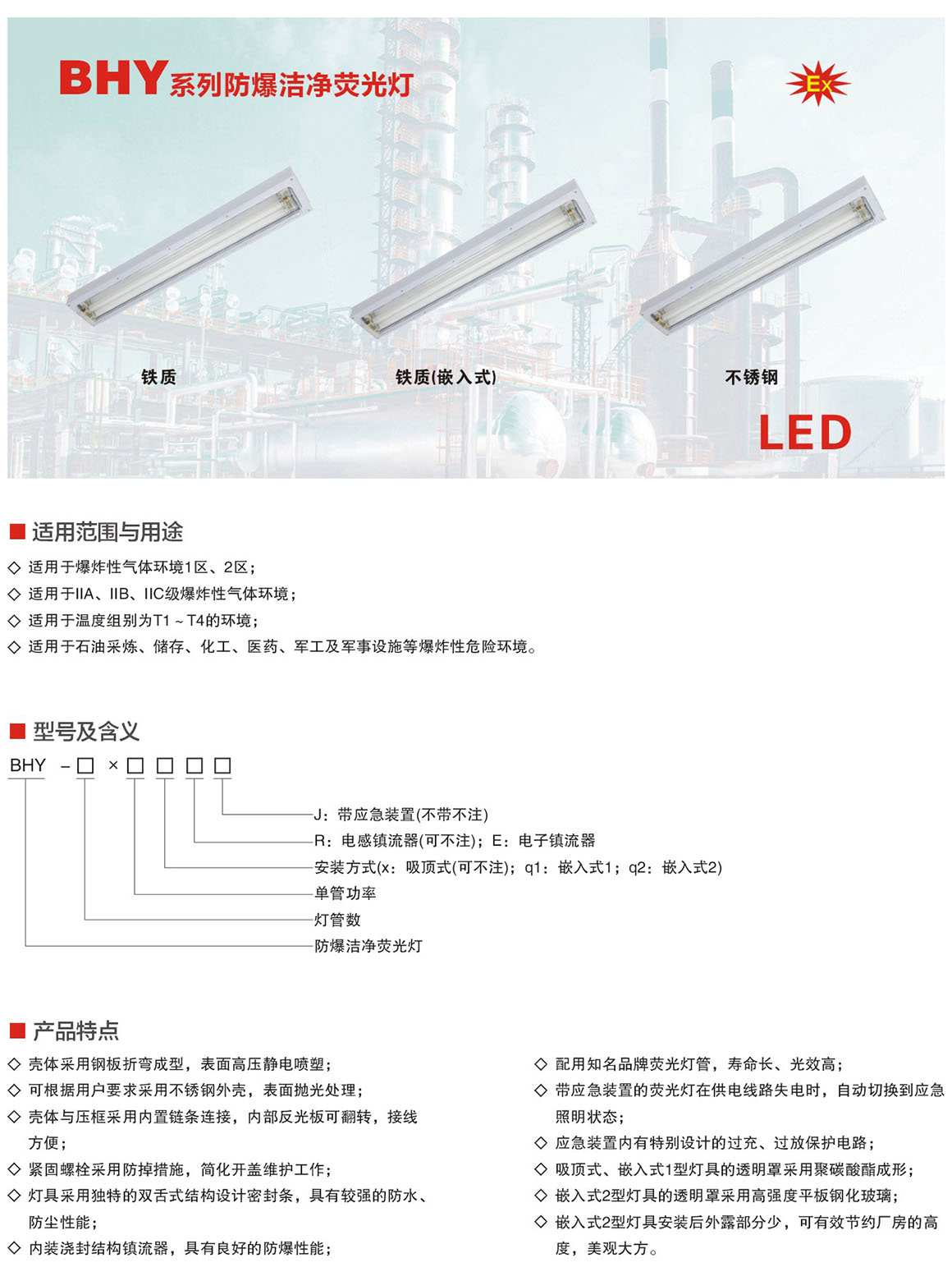 产品中心 厂用防爆灯具 BHY系列防爆洁净荧光灯(ⅡC)