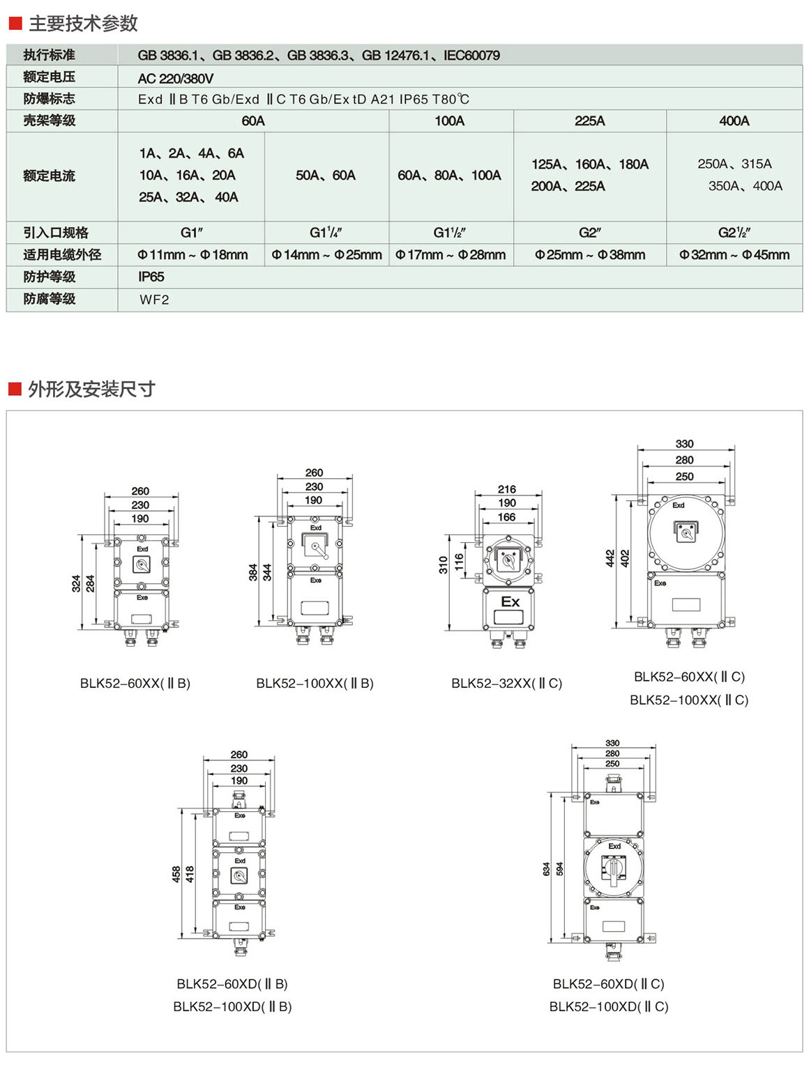 产品中心 防爆配电箱 BLK52系列防爆断路器(ⅡB、ⅡC、Ex tD)