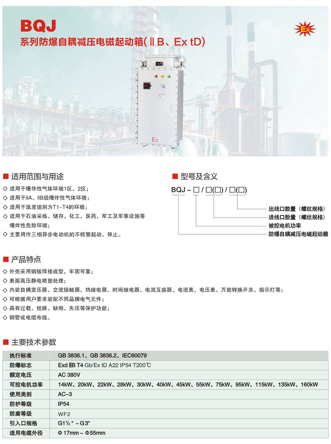 产品中心 防爆配电箱 BQJ系列防爆自藕减压电磁起动箱(ⅡB、Ex tD)