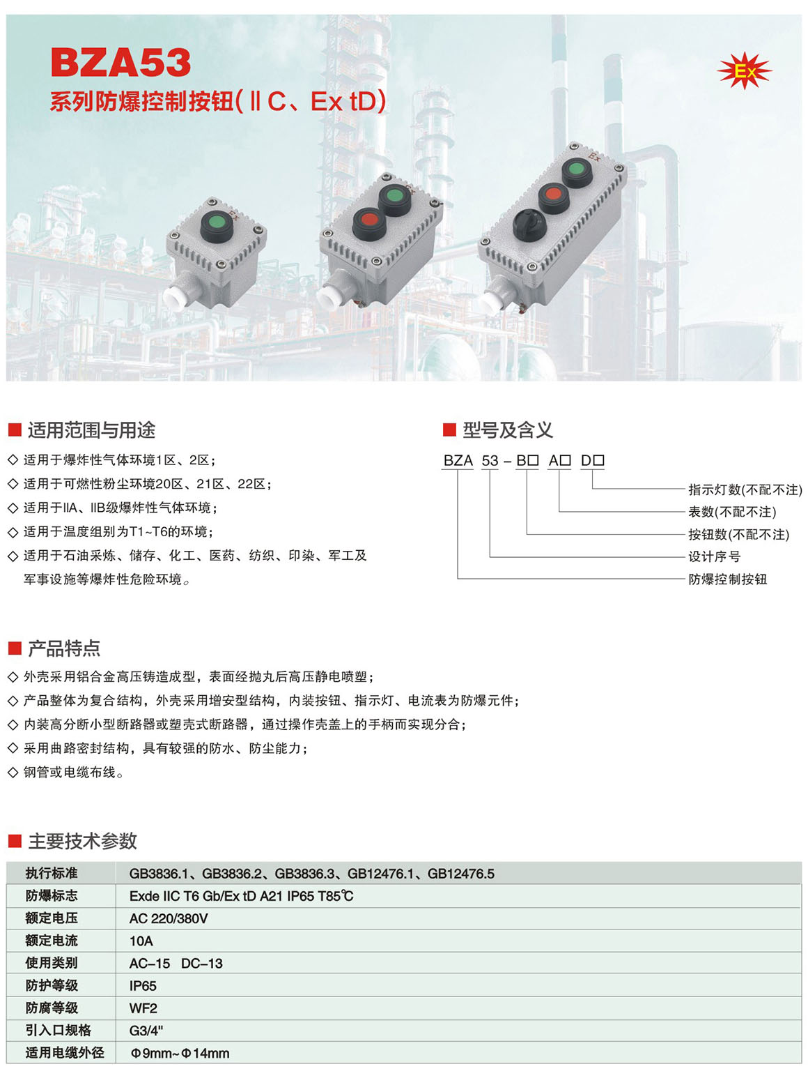 产品中心 防爆配电箱 BZA53系列防爆控制按钮(ⅡC、Ex tD)