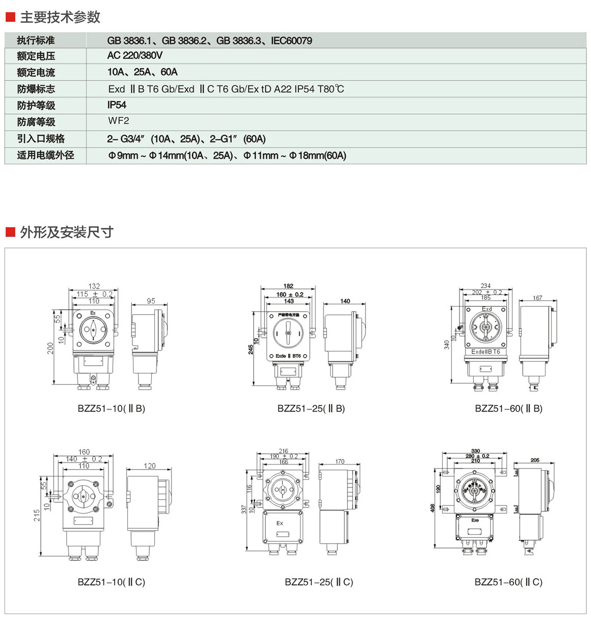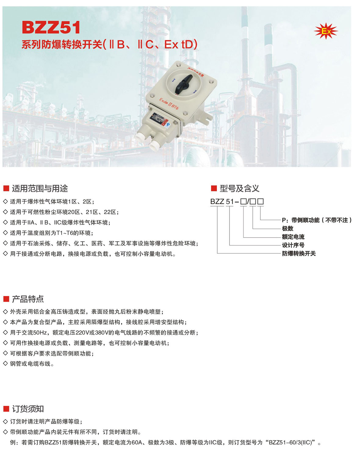 产品中心 防爆配电箱 BZZ51系列防爆转换开关(ⅡB、ⅡC、Ex tD)