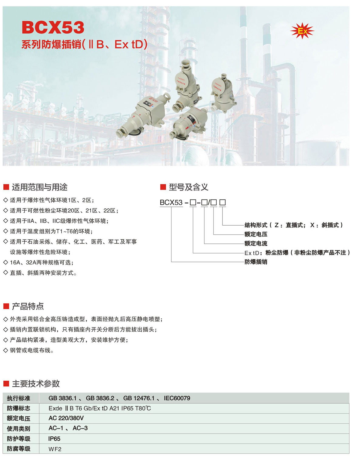 产品中心 防爆配电箱 BCX53系列防爆插销(ⅡB、Ex tD)