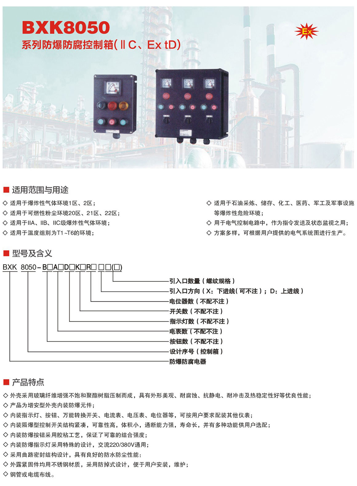 产品中心 防爆防腐电器 BXK8050系列防爆防腐控制箱(ⅡC、Ex tD)