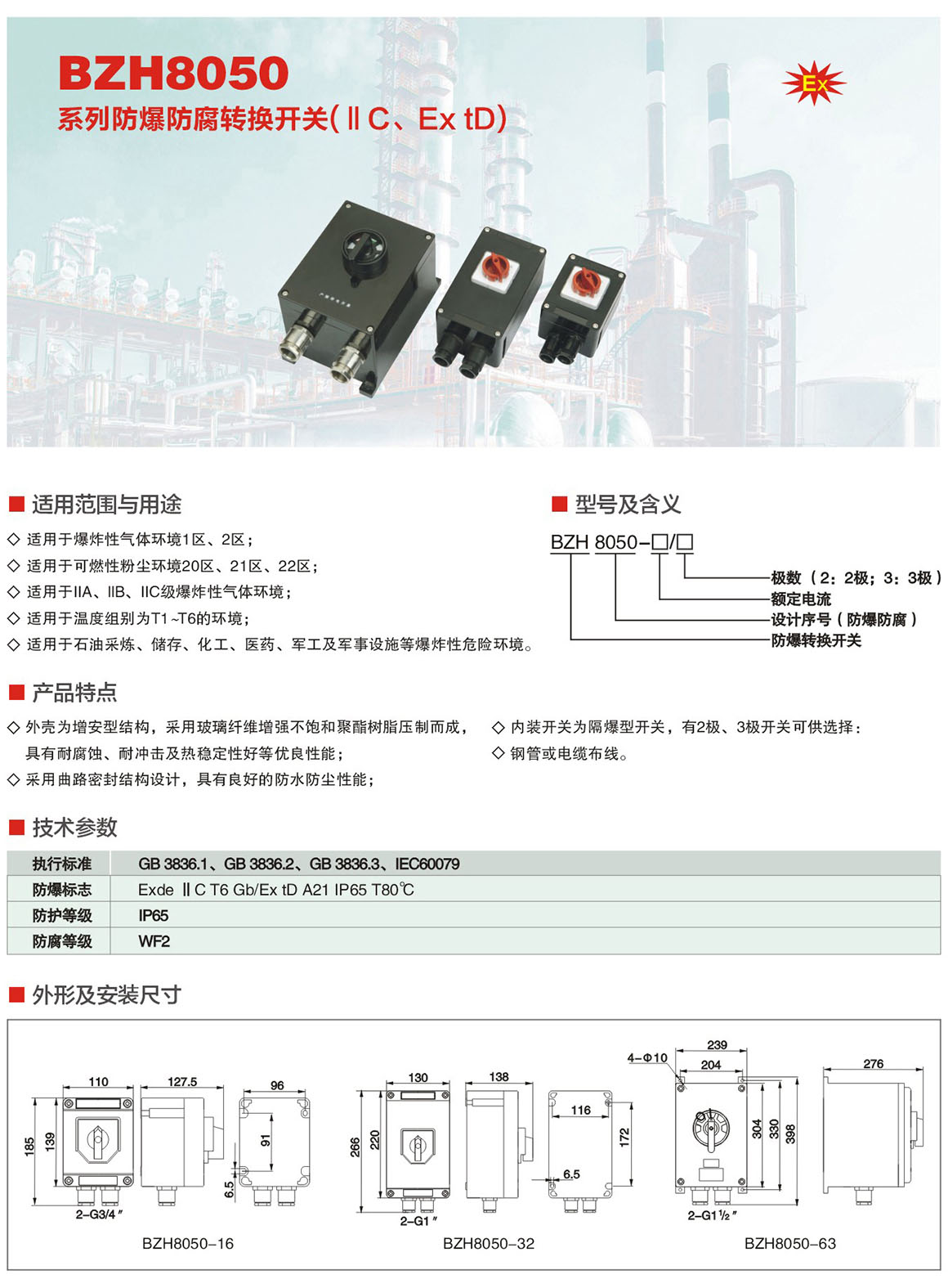 产品中心 防爆防腐电器 BZH8050系列防爆防腐转换开关(ⅡC、Ex tD)