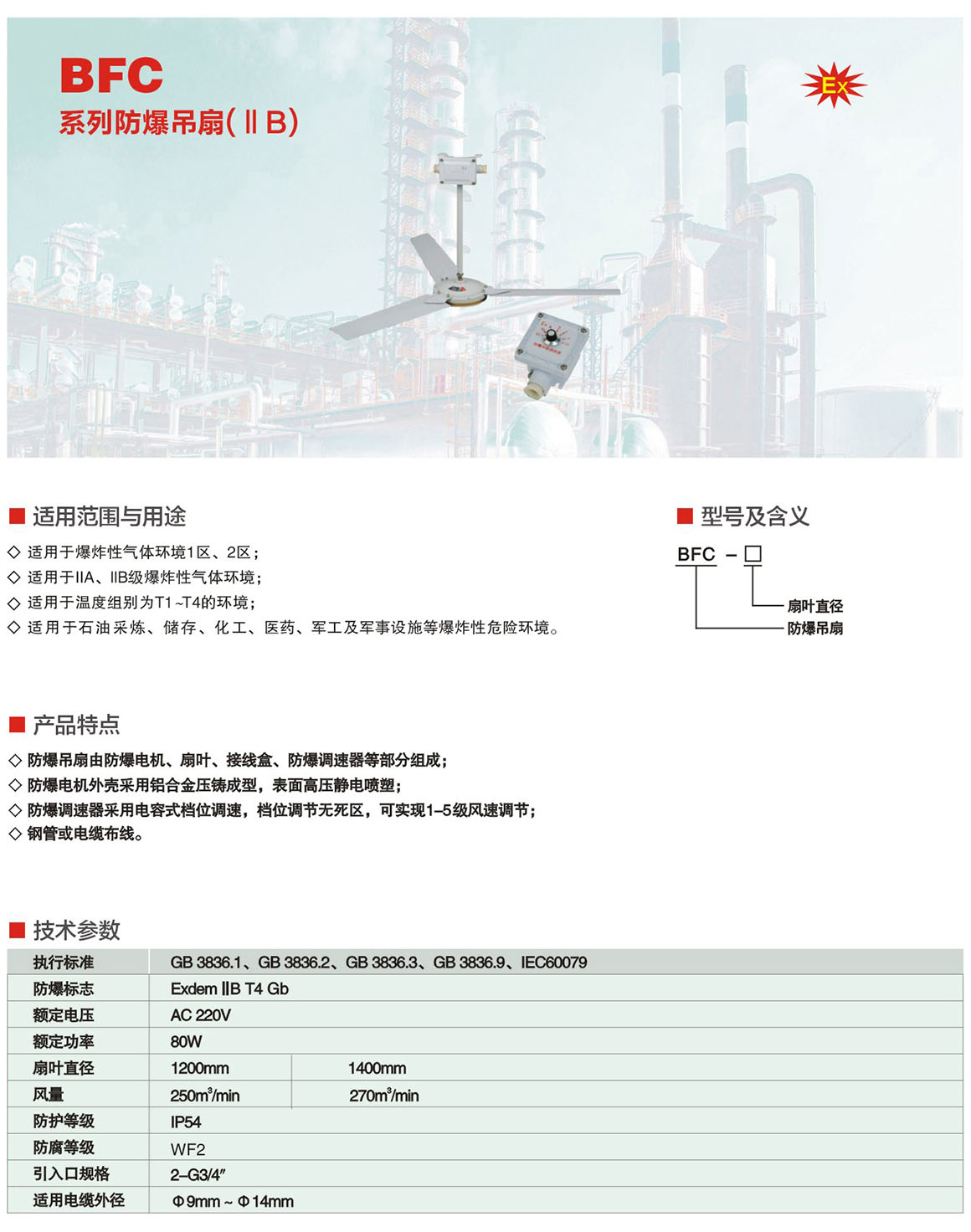 产品中心 防爆风机、管件系列 BFC系列防爆吊扇(ⅡB)