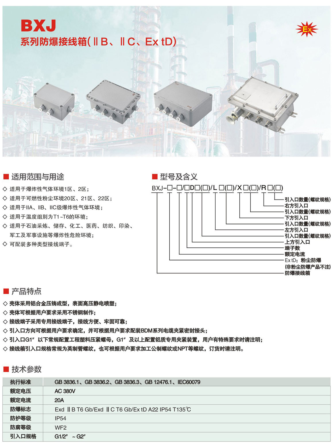 产品中心 防爆风机、管件系列 BXJ系列防爆接线箱(ⅡB、ⅡC、Ex tD)